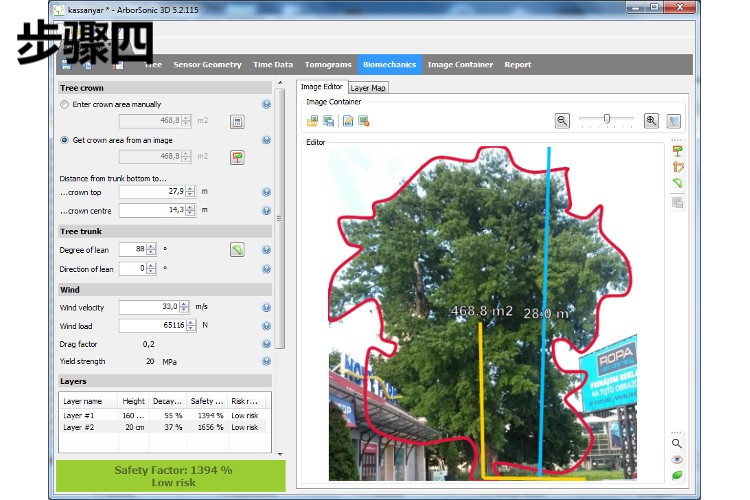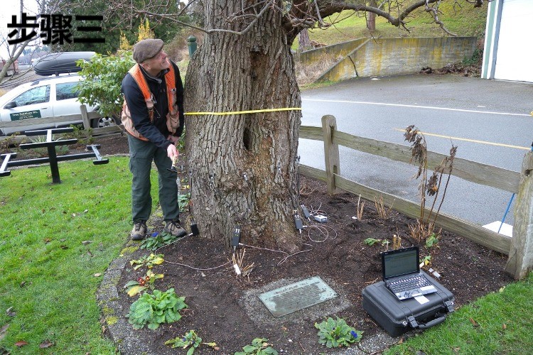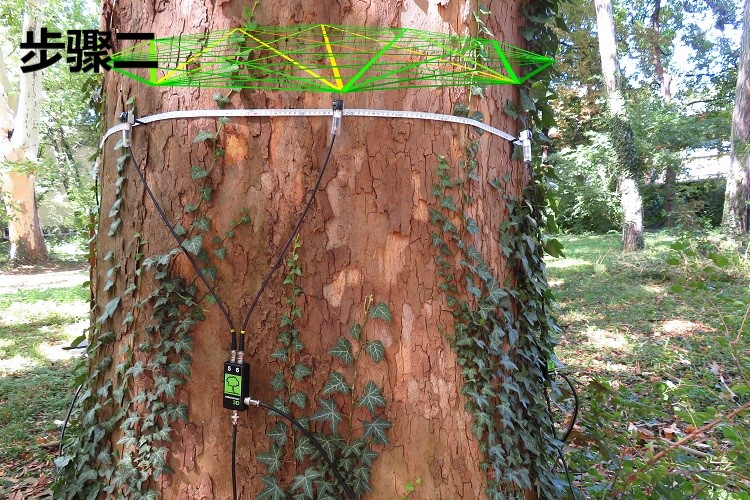 3)用钢锤敲击每个传感器产生声波。ArborSonic 3D以微秒级的精度测量出到达每个传感器的传播时间,并将数据传输至计算机;
