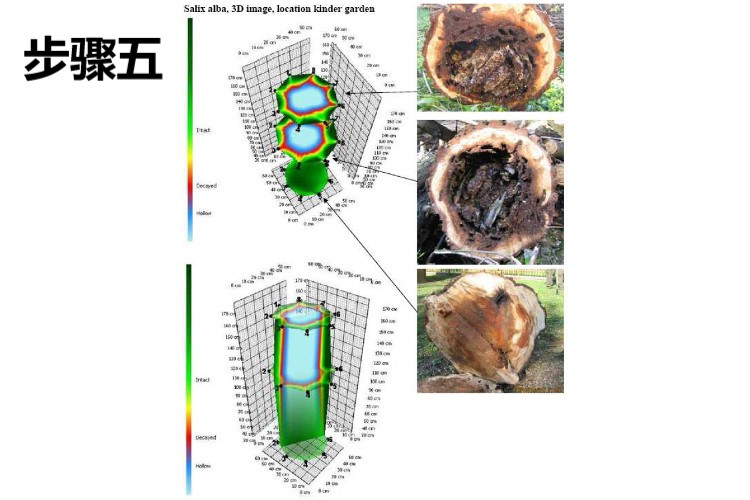 Fakopp 木材应力波测定仪能够无损地检测树干中腐烂或空心区域的位置和尺寸。它的工作原理是基于树干周围几个传感器之间的声速测量。如果两个传感器之间存在空洞或腐败,声速就会下降。基于Radon变换可重建图像,通过两个或两个以上的2D层图像之间插值可以创建3D图像。常用的传感器数量是10个或12个,可配置至多32个传感器。