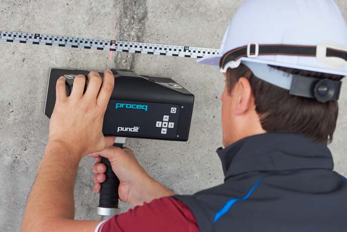 只需将传感器连接到 iPad 即可轻松测量混凝土厚度、检测缺陷和确定物体的位置。这包括隧道衬砌等厚混凝土构件以及超出钢筋层的管道和钢腱管道的评估。